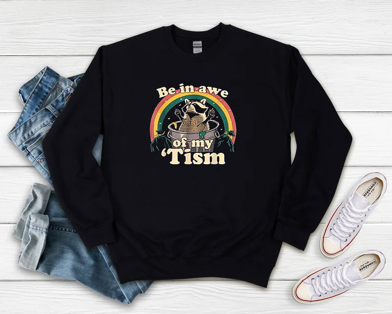 Autism Funny Be In Awe Of My ‘Tism Meme Autistic Raccoon Sweatshirt For Style Your Life | Theaffordableshirt.com