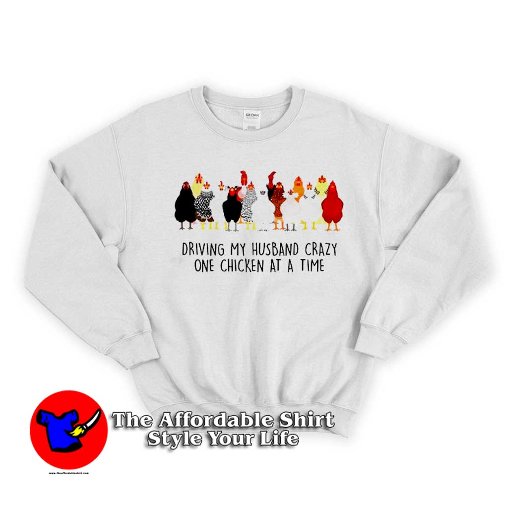 Welcome to The Affordable Shirt – Style Your Life | Theaffordableshirt.com. You’ve now found the staple Sweatshirt of your wardrobe. It’s made of a thicker, heavier cotton, but it’s still soft and comfy. And the double stitching on the neckline and sleeves add more durability to what is sure to be a favorite!. Driving My Husband Crazy One Chicken Sweatshirt is everything you’ve dreamed of and more. It feels soft and lightweight, with the right amount of stretch. It’s comfortable and flattering for both men and women.