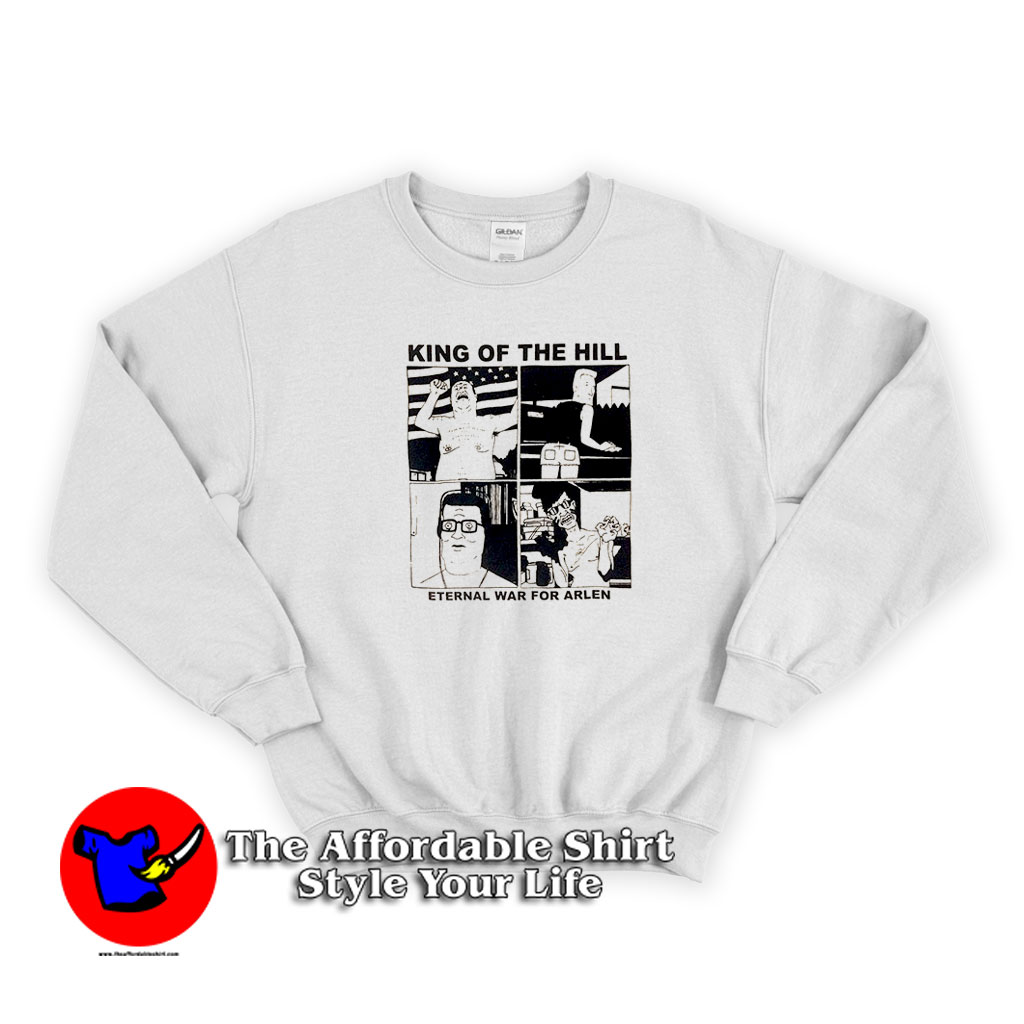 Welcome to The Affordable Shirt – Style Your Life | Theaffordableshirt.com. You’ve now found the staple Sweatshirt of your wardrobe. It’s made of a thicker, heavier cotton, but it’s still soft and comfy. And the double stitching on the neckline and sleeves add more durability to what is sure to be a favorite!. King Of The Hill Eternal War For Arlen Unisex Sweatshirt is everything you’ve dreamed of and more. It feels soft and lightweight, with the right amount of stretch. It’s comfortable and flattering for both men and women.