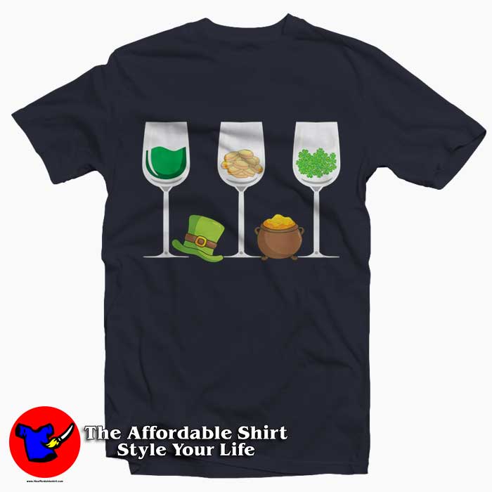 Three Wine Glasses Green Leprechaun T-Shirt St Patrick’s Day