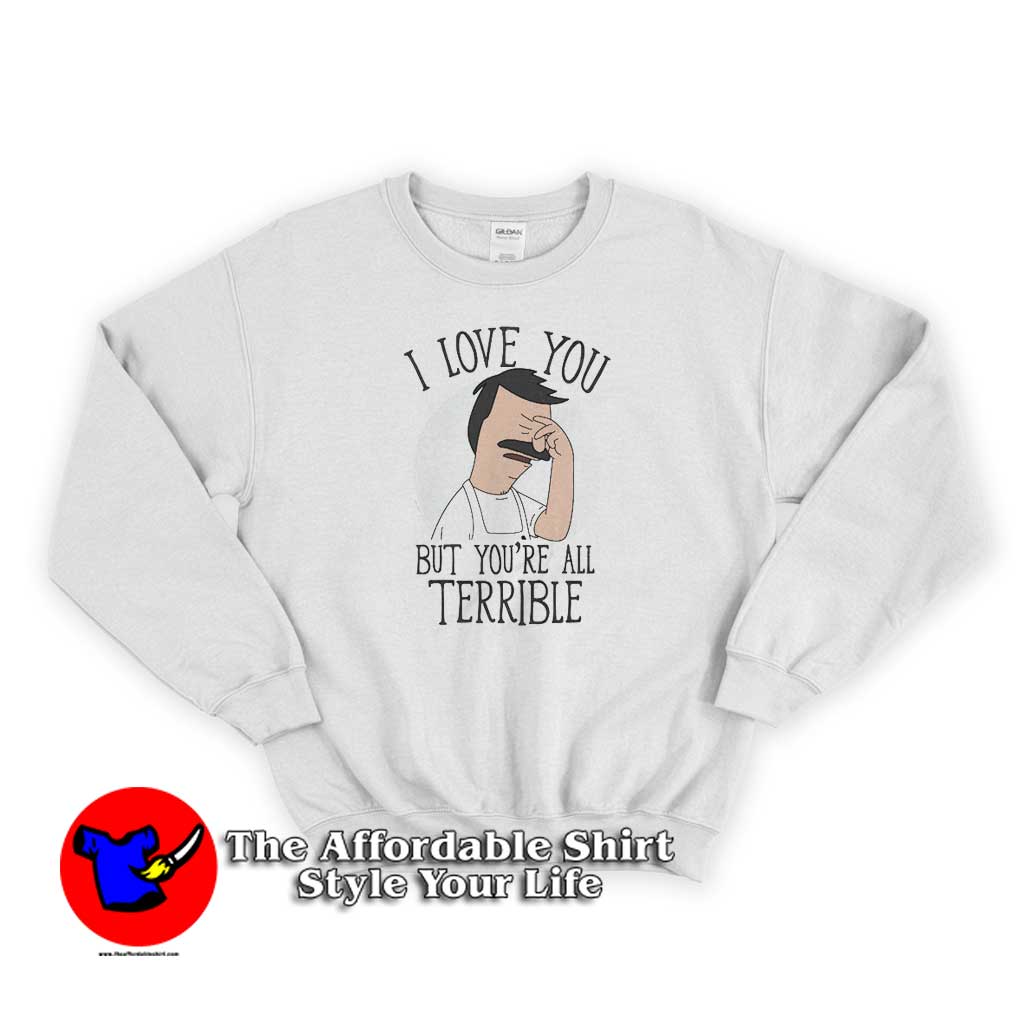 Welcome to The Affordable Shirt – Style Your Life | Theaffordableshirt.com. You’ve now found the staple Sweatshirt of your wardrobe. It’s made of a thicker, heavier cotton, but it’s still soft and comfy. And the double stitching on the neckline and sleeves add more durability to what is sure to be a favorite!. Trevco Bobs Burgers Love You Terribly Sweatshirt is everything you’ve dreamed of and more. It feels soft and lightweight, with the right amount of stretch. It’s comfortable and flattering for both men and women.
