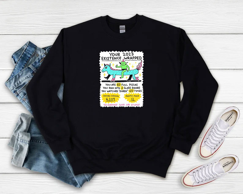 Welcome to The Affordable Shirt – Style Your Life | Theaffordableshirt.com. You’ve now found the staple Sweatshirt of your wardrobe. It’s made of a thicker, heavier cotton, but it’s still soft and comfy. And the double stitching on the neckline and sleeves add more durability to what is sure to be a favorite! Your 2023 Existence Wapped You Ate 87 Full Pizzas Sweatshirt and more. It feels soft and lightweight, with the right amount of stretch. It’s comfortable and flattering for both men and women.